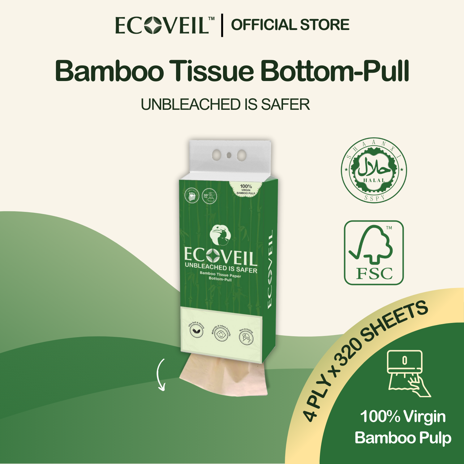 ECOVEIL Unbleached Bamboo Tissue Paper Bottom-Pull 4-Ply 320s