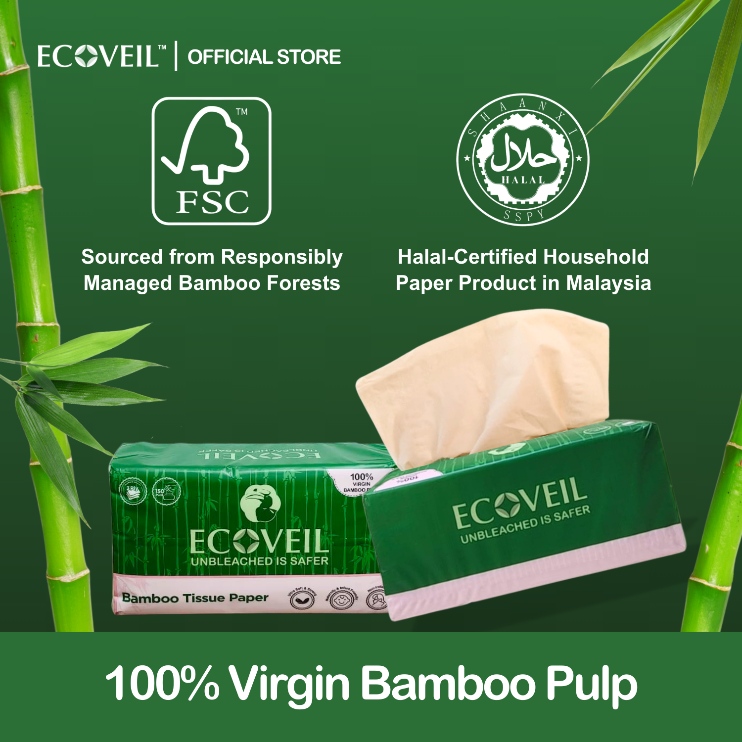 ECOVEIL Unbleached Bamboo Tissue Paper 3-Ply (4x150s)
